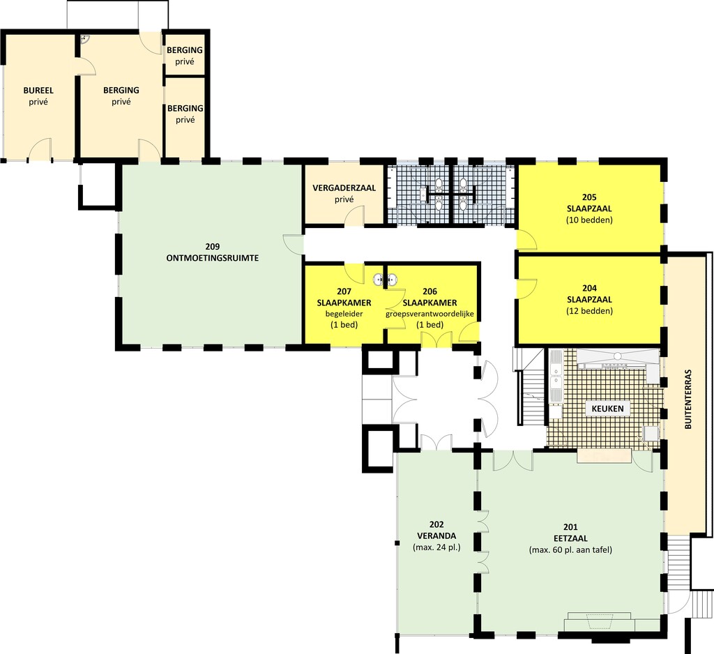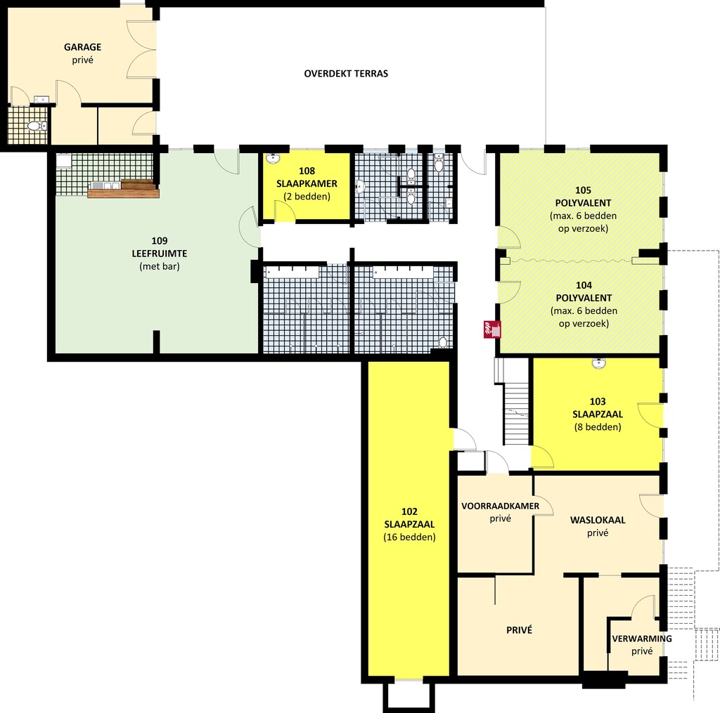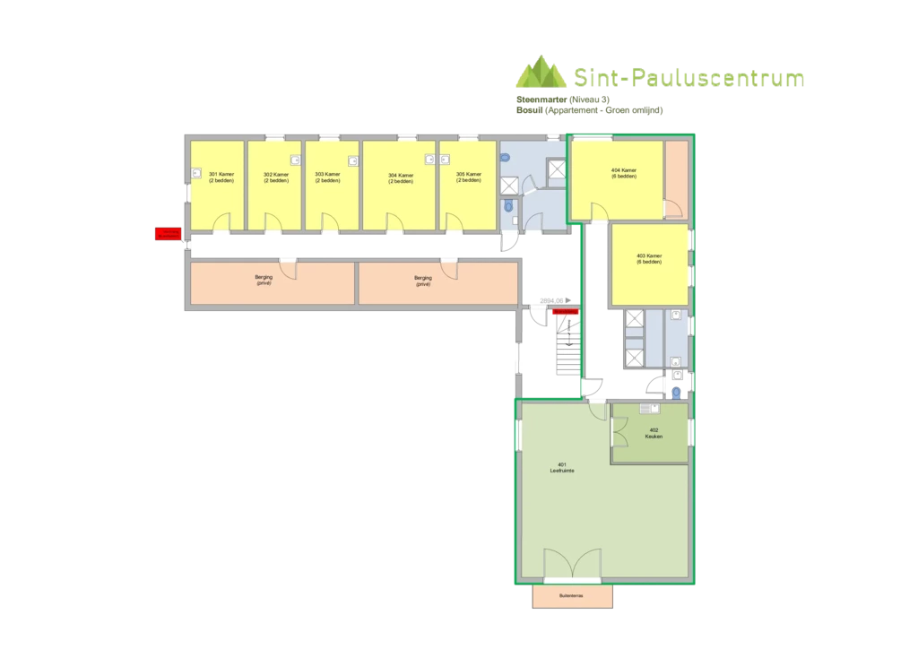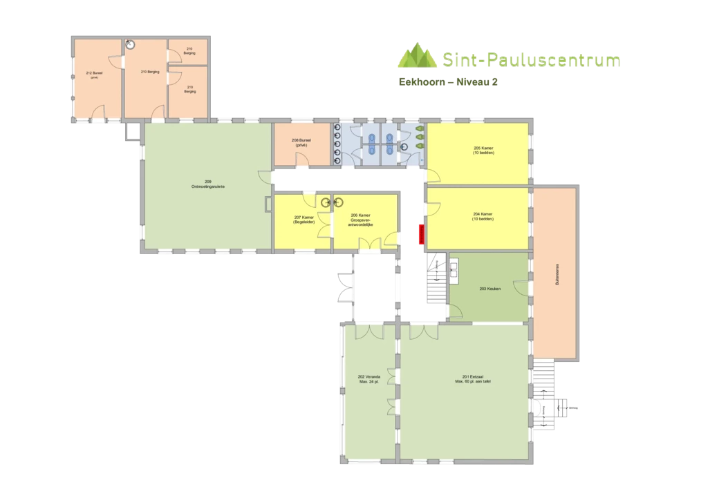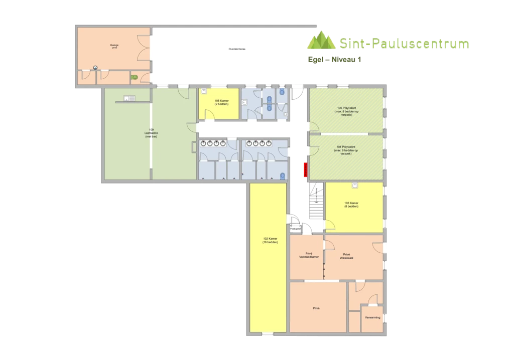 In het St-Pauluscentrum zijn er twee onderscheiden delen, het hoofdgebouw en het appartement die in principe samen verhuurd worden.