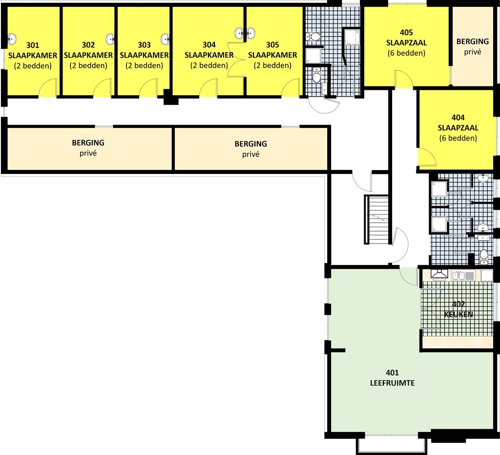 Als een kleine groep het hoofdgebouw in gebruik heeft, kan je het appartement ook afzonderlijk huren.